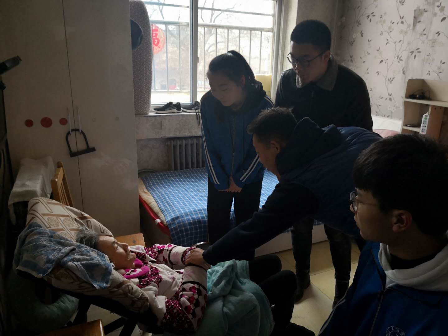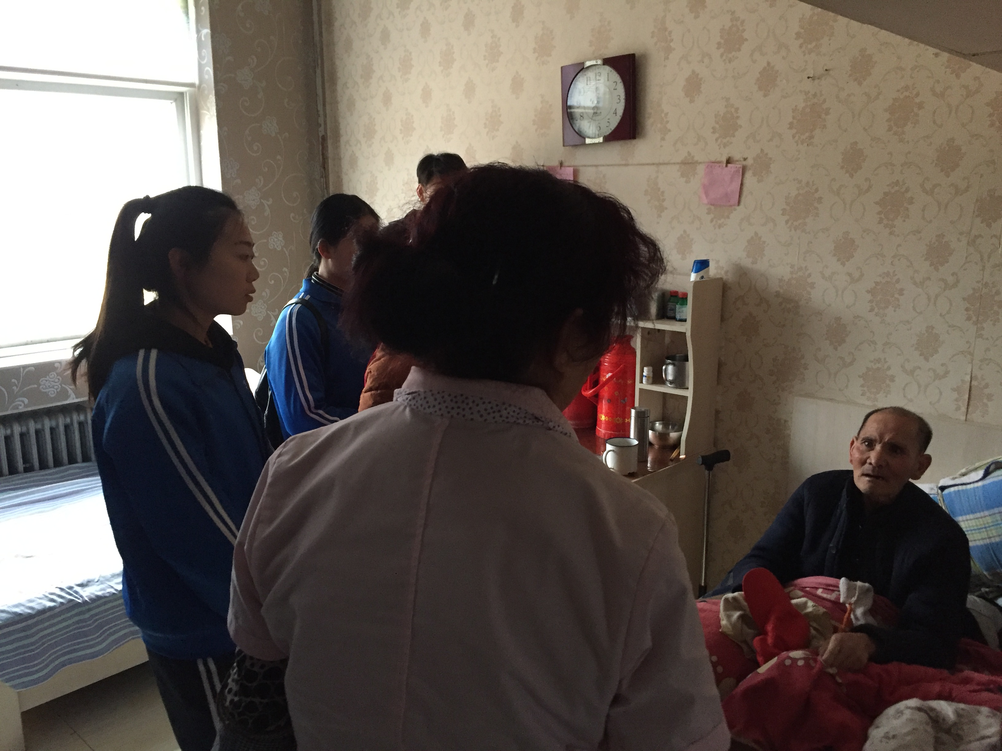 同学们在老师的安排下,自动结成若干个小组,纷纷拿起抹布、拖把,擦桌子、拖地、擦窗户玻璃等,积极打扫卫生,帮敬老院进行义务清洁;大家还一起围在老人们的身边,给老人捶背按摩,闲话家常,使老人们感受到了“家”的感觉,感受了到“家人”的温暖!在劳动中,同学们不怕脏,不怕累,不怕烦,看着焕然一新的敬老院和老人们一脸的赞意,大家心里乐滋滋的。