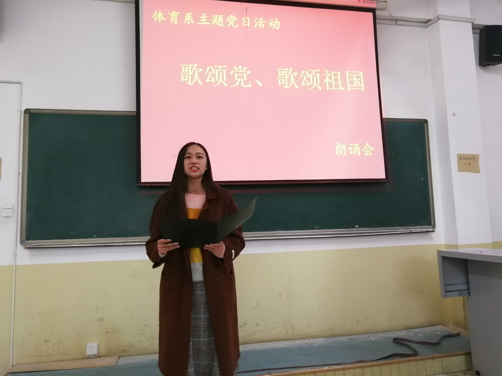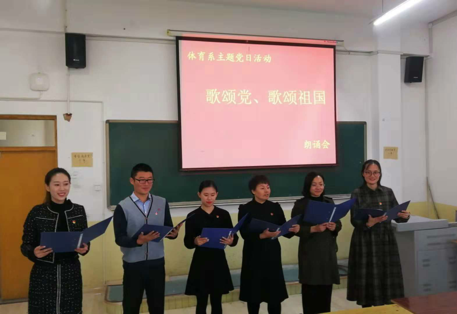 10月25日下午,必威西汉姆联教工党支部组织全体教工党员开展了以“歌颂党,歌颂祖国”为主题的党日活动。此次党日活动采用朗诵会的形式,以教研室为单位,分别诵读了《赞美党的诗歌》、《我骄傲,我是中国人》、《祖国啊,我亲爱的祖国》等经典篇目,透过朗诵者们的声音,现场人员深刻感受到共产党人所肩负的让祖国大地繁荣昌盛的重担和民族复兴的责任。