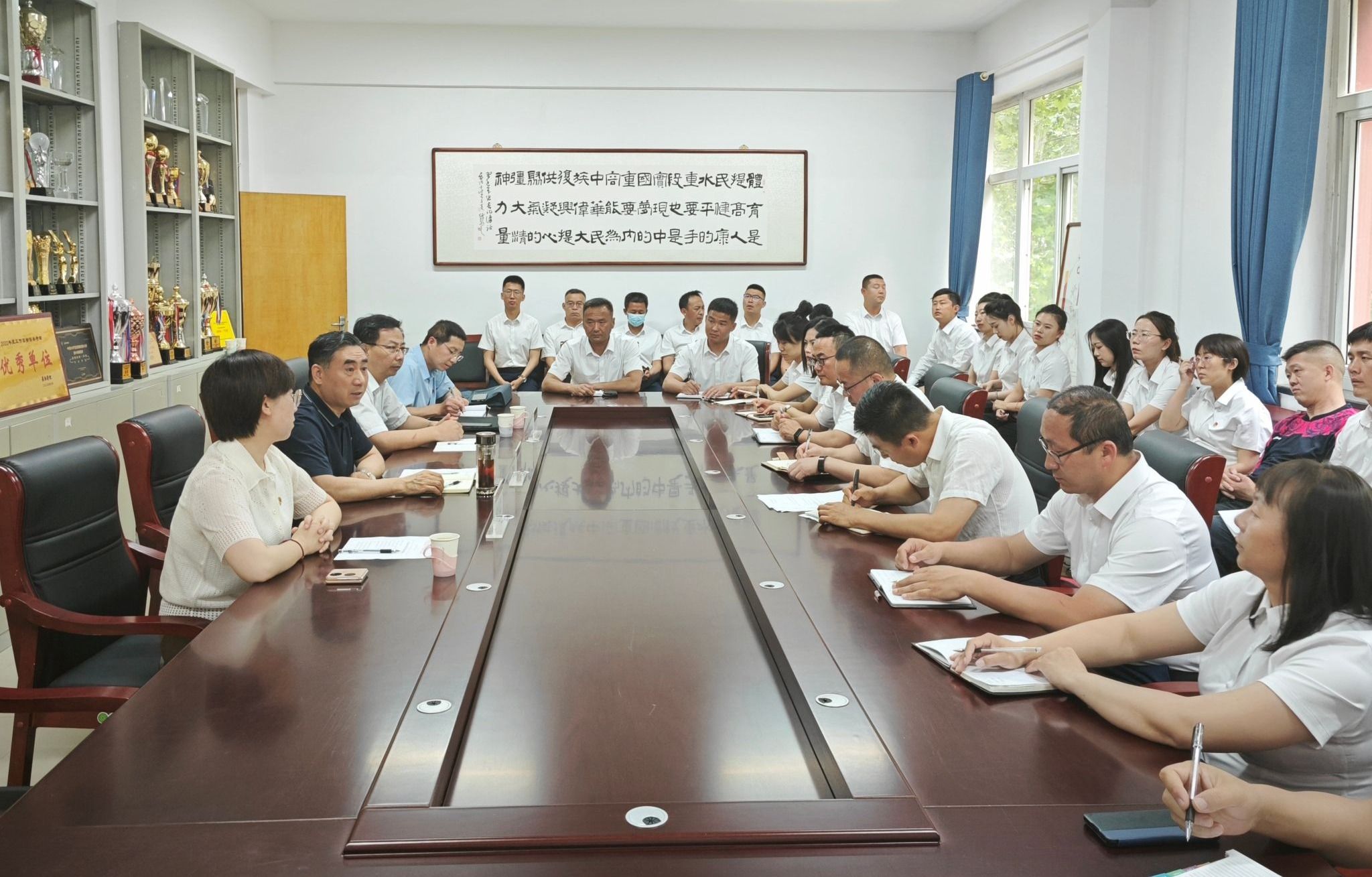 6月12日下午,党委书记郝勇东,党委副书记史晓东一行到必威西汉姆联调研指导工作,必威西汉姆联班子成员和全体教师参加会议。