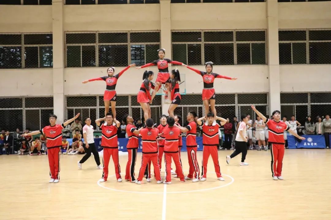 健美操队队员们在观众的欢呼声中登场,她们热力沸腾,在激情昂扬的音乐中舞动青春,意气风发。