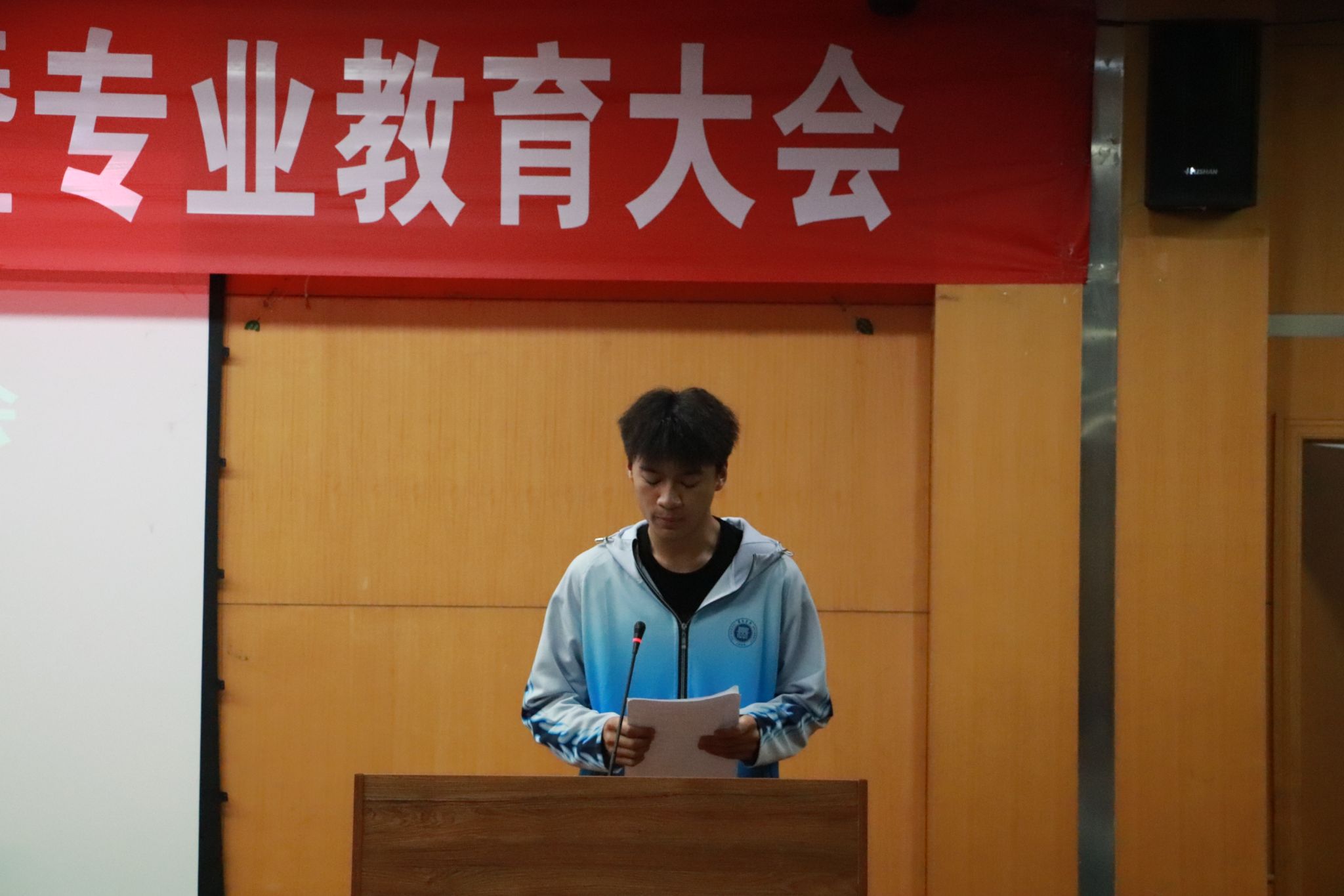 新生代表赵志恒在发言中表达了对学校、系领导和老师们亲切关怀的感谢,并承诺将秉承校训,珍惜大学时光,呼吁同学们拥抱机遇,迎接挑战,以坚韧不拔的意志乘风破浪,以心系天下的情怀让青春远航。努力成为心中有梦、眼里有光的“破壁少年”,在风华正茂的年纪书写青春的新篇章。