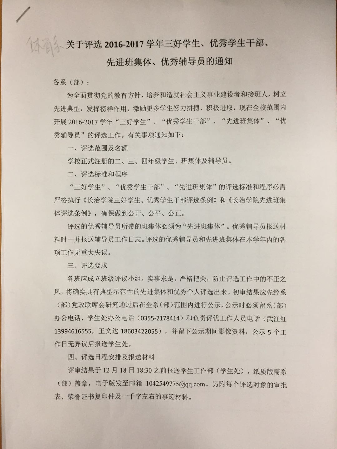 关于评选三好学生、优秀学生干部、先进班集体、优秀辅导员通知