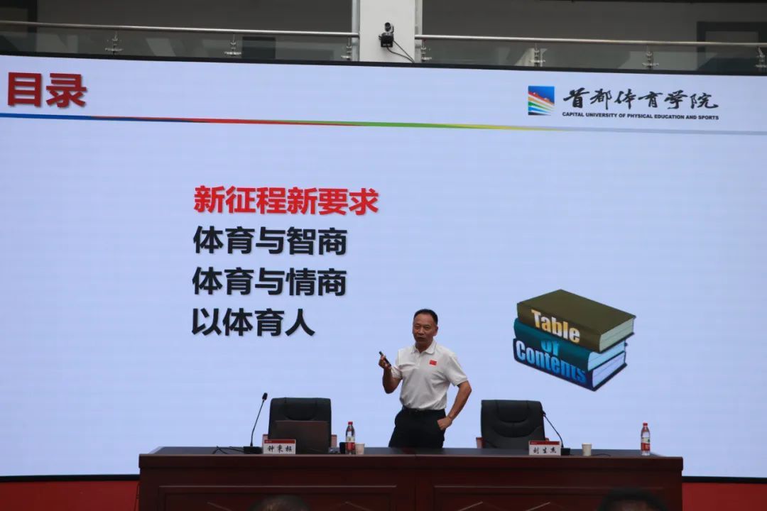 在“体育运动与现代人格塑造”讲座中,钟秉枢教授结合习近平总书记在多个重要场合的讲话精神,阐述了新时代新征程对人才的新要求,他引用习近平总书记关于体育的重要论述,从新时代新要求、严峻的现实、从素质教育到核心素养、体育与健康学科核心素养、体育健康课程与现代人格塑造等方面做了深入浅出的分析。钟秉枢教授的讲述具有很高的理论深度,同时紧扣现实,针对现有问题给出了相应的优化与解决方法,获得了师生们的热烈掌声。