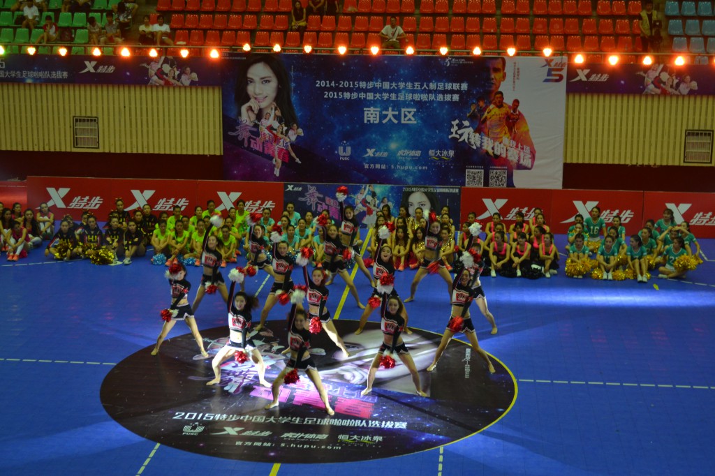5月21日,2015年特步中国大学生足球啦啦队选拔赛(南大区)的比赛在湖北大学拉开帷幕,我院健美操队与广州体育学院、河北师范大学、三峡大学、广西艺术学院、广西民族大学、湖北经济学院,武汉东湖学院、中山大学南方学院等12支来自不同地区的大学啦啦队参加了此次比赛。 本次比赛异常激烈,比赛期间还有PPTV、虎扑体育、菁体育多家媒体现场直播。经过积分赛、PK赛、12进6、6进2、冠亚军争夺赛等一系列比拼后,我院荣获南大赛区冠军,顺利进入全国总决赛。