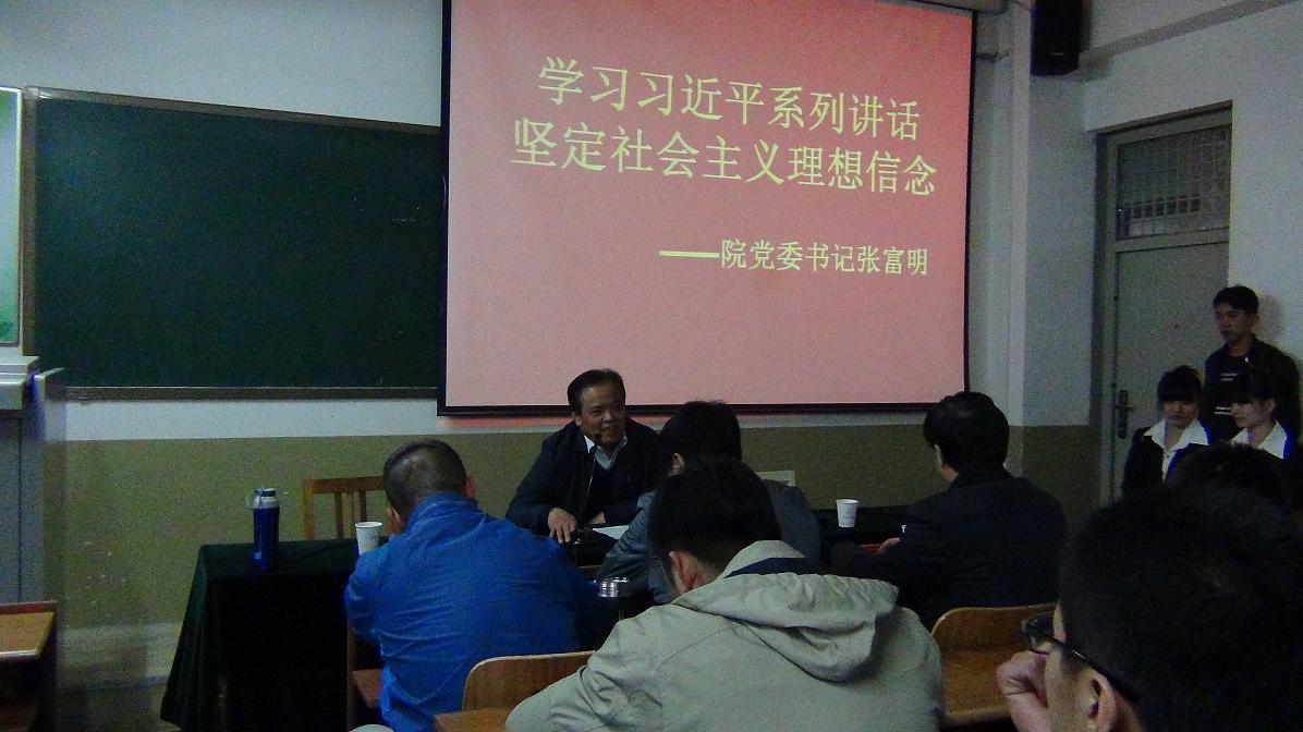 为进一步深化党的群众路线教育实践活动,11月15日下午,必威西汉姆联、历史文化与旅游管理系党总支共同邀请院党委书记张富明教授为两系师生党员干部作了题为“学习习近平系列讲话,坚定社会主义理想信念”的专题讲座。